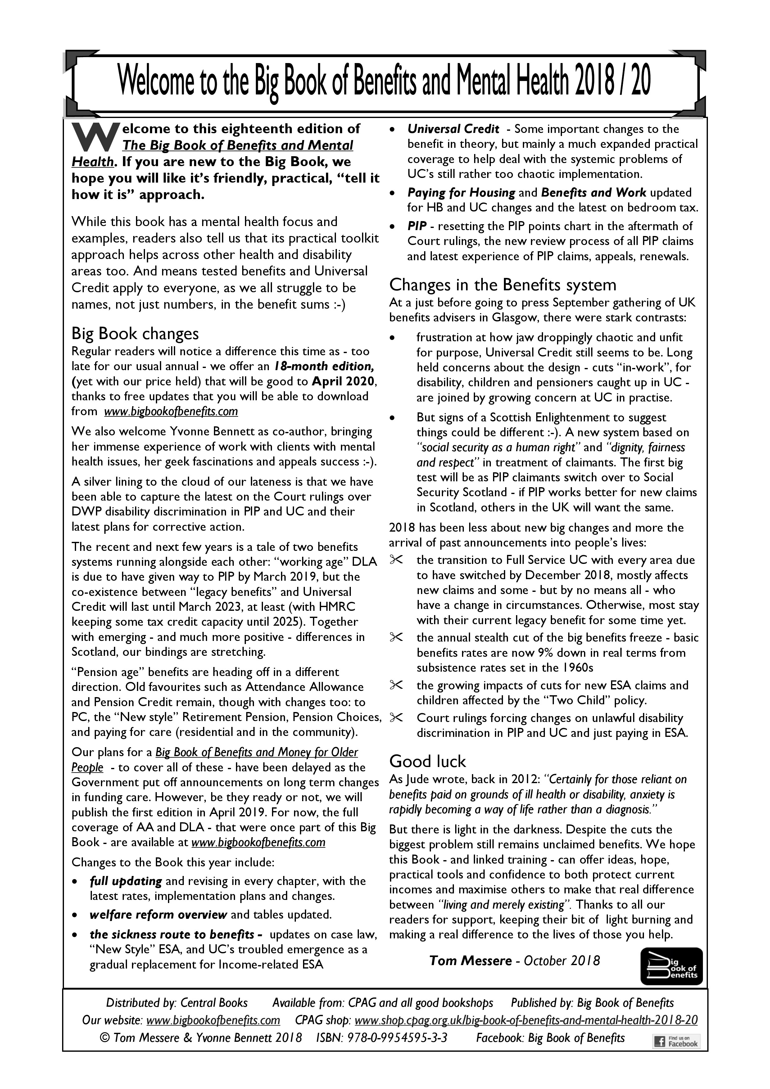 To view the full contents and some sample pages from this year’s book, please click excerpts from the Big Book of Benefits and Mental Health 2017/18